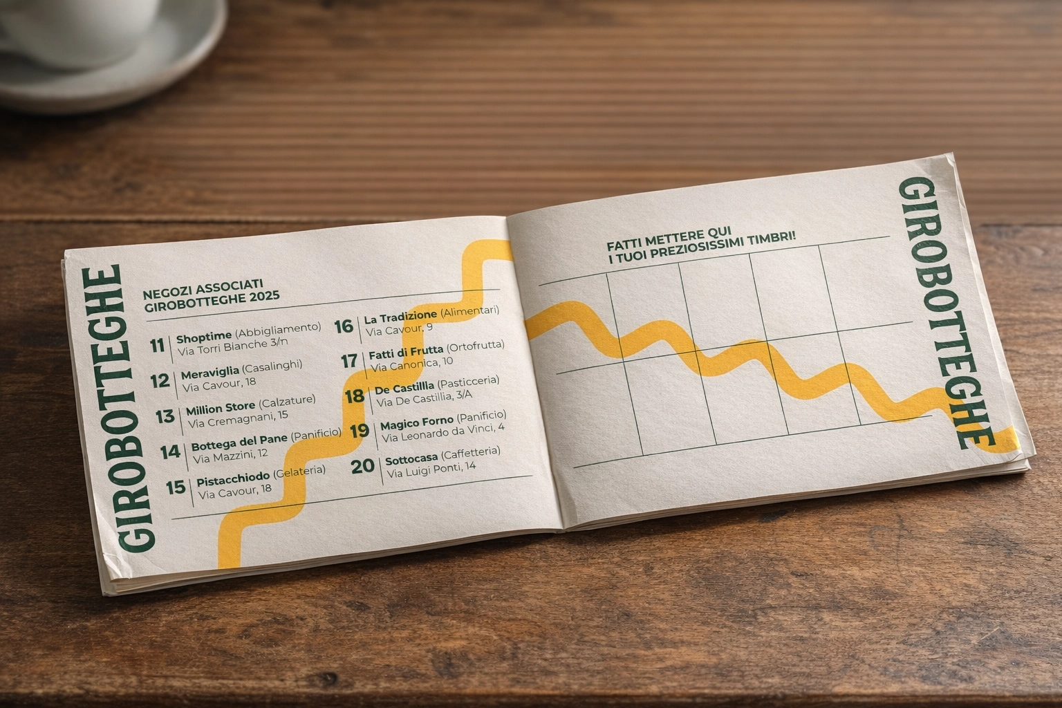 Il Girobotteghe® è un format realizzato da Polline e pensato per i comuni italiani, già proposto ai comuni di Vimercate, Concorezzo e Padova, che invita i cittadini a riscoprire il commercio locale. I partecipanti visitano le attività aderenti, raccolgono timbri su una card e, al raggiungimento di una soglia, accedono a sconti dedicati. Un meccanismo semplice e coinvolgente che genera flusso nei negozi, rafforza la rete tra esercenti e trasforma lo shopping di prossimità in un’esperienza condivisa.